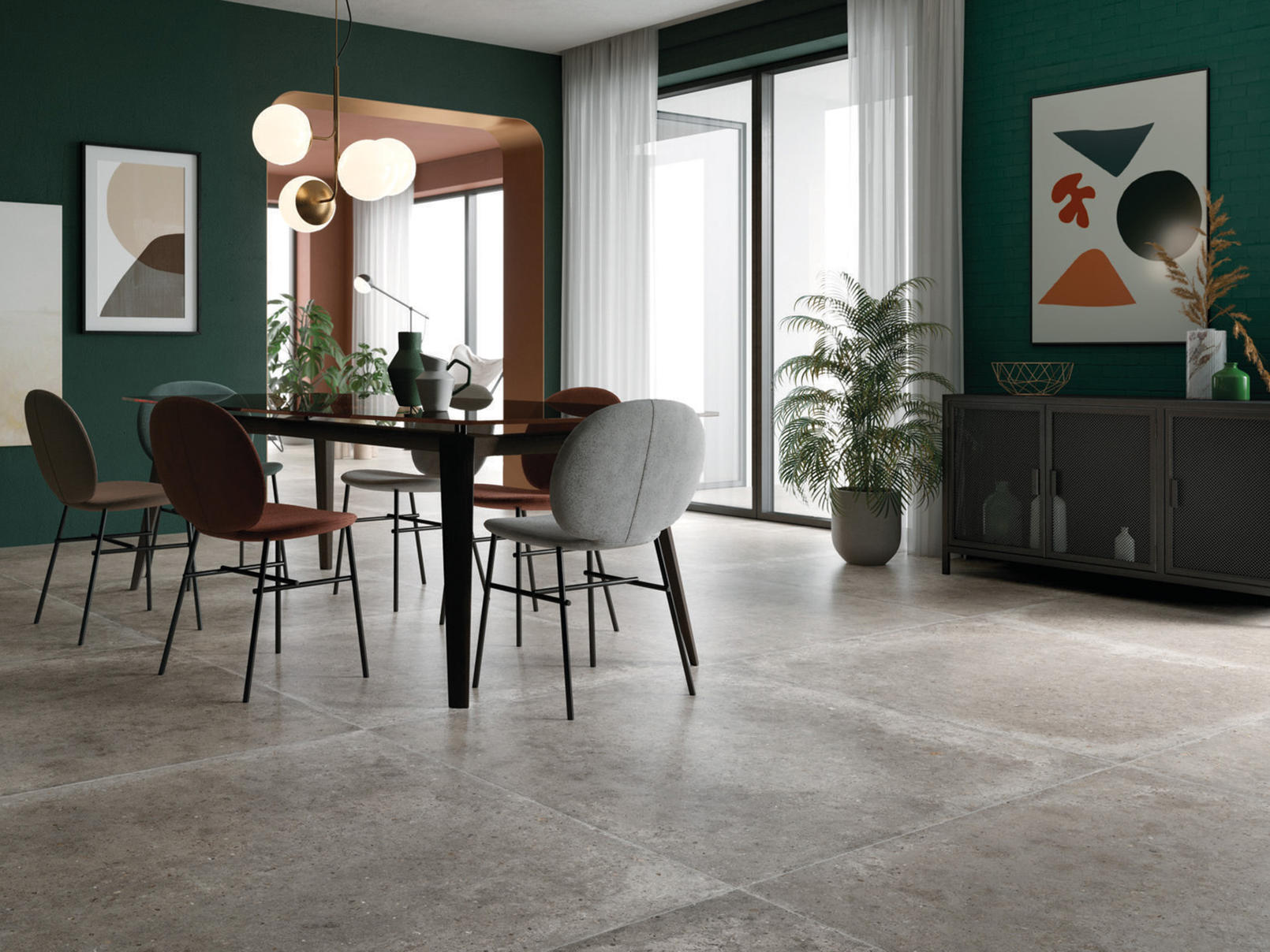 This rectified porcelain collection achieves a perfect balance between the natural look of stone and the industrial qualities of concrete. Its seemingly uniform limestone surface, dotted with small pebbles, makes it ideal for residential or commercial projects with a contemporary look. Available in four colors that reflect the stylistic sensibility of the shades and combination of materials, Anima is the perfect backdrop to enhance spaces large or small.