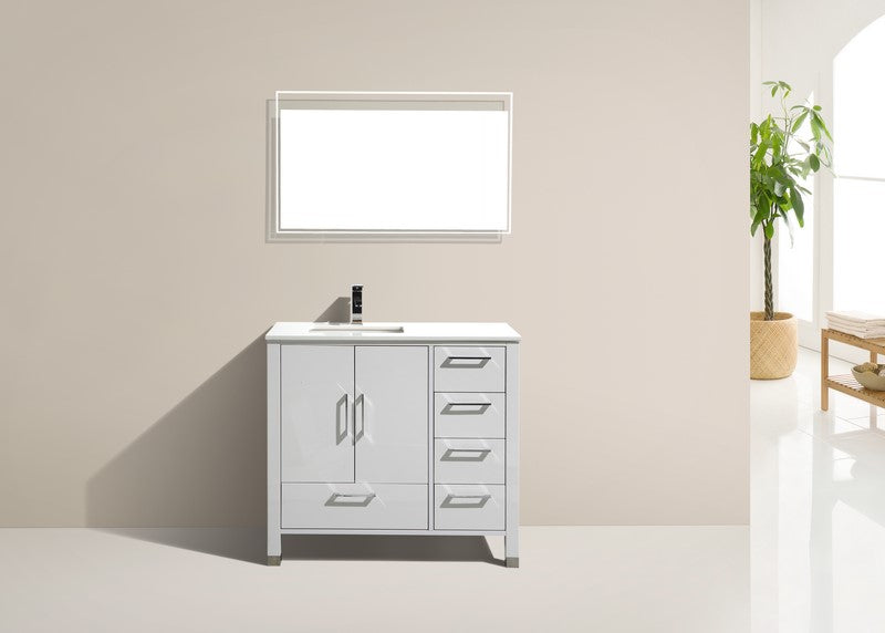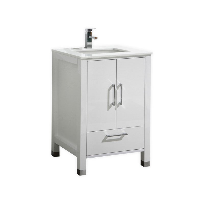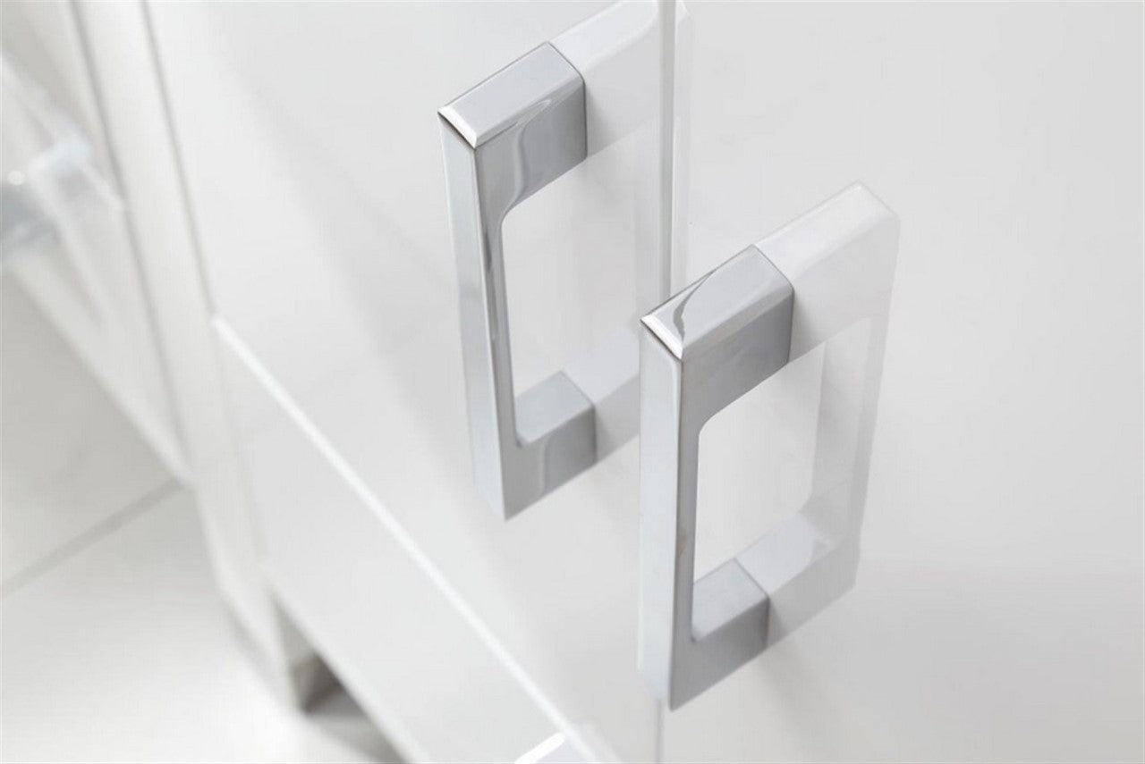 The Anziano Bathroom Vanity provides a contemporary design perfect for any bathroom remodel. There is ample storage in this free-standing vanity with chrome hardware accents. The pure white countertop it is made using nanotechnology, that makes it virtually impenetrable and maintenance free.