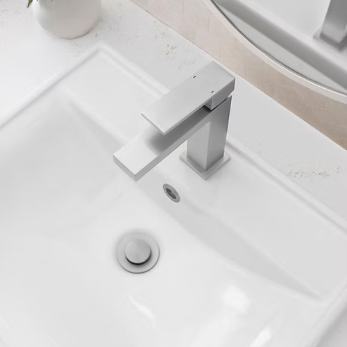 The ergonomic rectangular handle allows for effortless water and temperature control in a single motion. Available in four finishes: Brushed Gold, Brushed Nickel, Polished Chrome, and Matte Black, the B-112 is designed to match your vanity, cabinets, and sink.