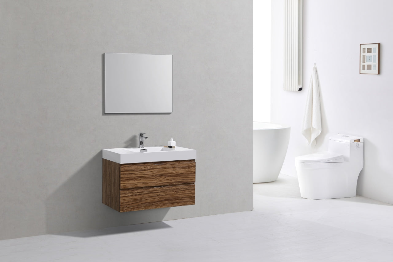 The Bliss is one of the most elegant modern Bathroom Vanities around. This model comes with a reinforced Acrylic sink, Marine Wood Veneer Constructed Console that is fully moister and water proof, with high quality European DTC Hardware, that provides smooth soft-closing operation drawers.