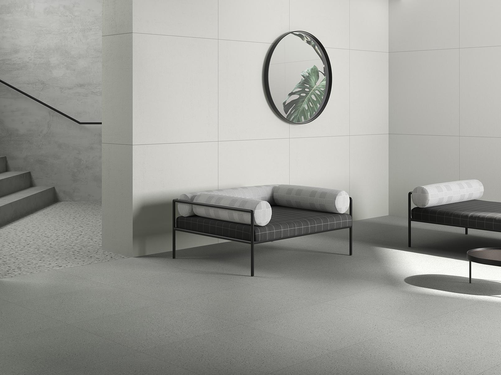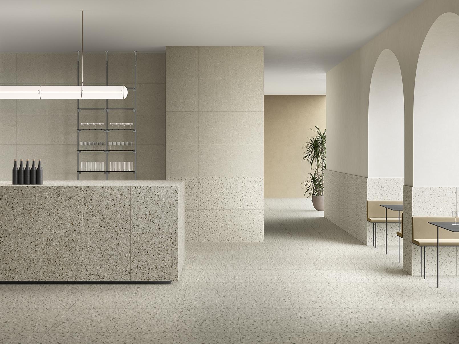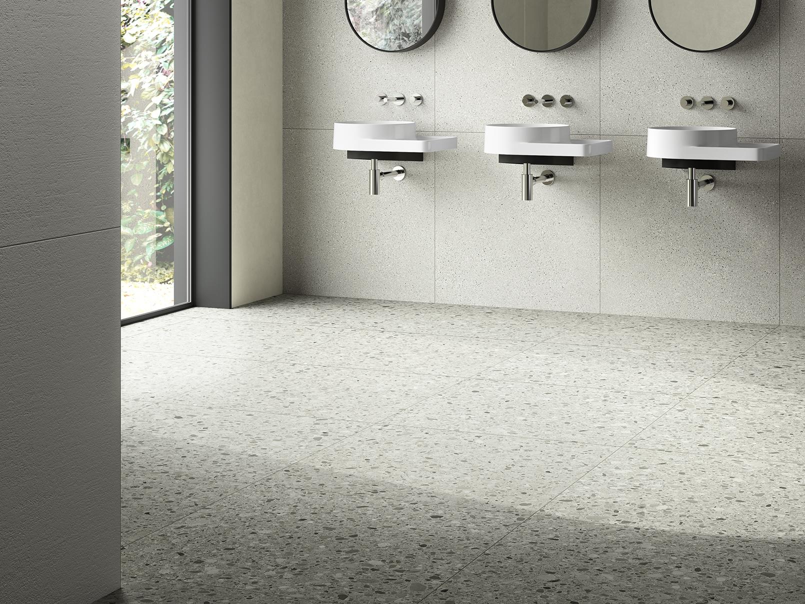 Inspired by the trend of minimalism, Cement Mix softens the traditional brutalist look of cement with a variety of warm earth tones. Its calm relief appearance reinterprets the look of terazzo using modern geometric patterns of marble chips. Designed in different layers of cement appearance, Cement Mix brings a whole new dimension to industrial design on floors and walls, in these three variants named Fine, Micro and Flake.