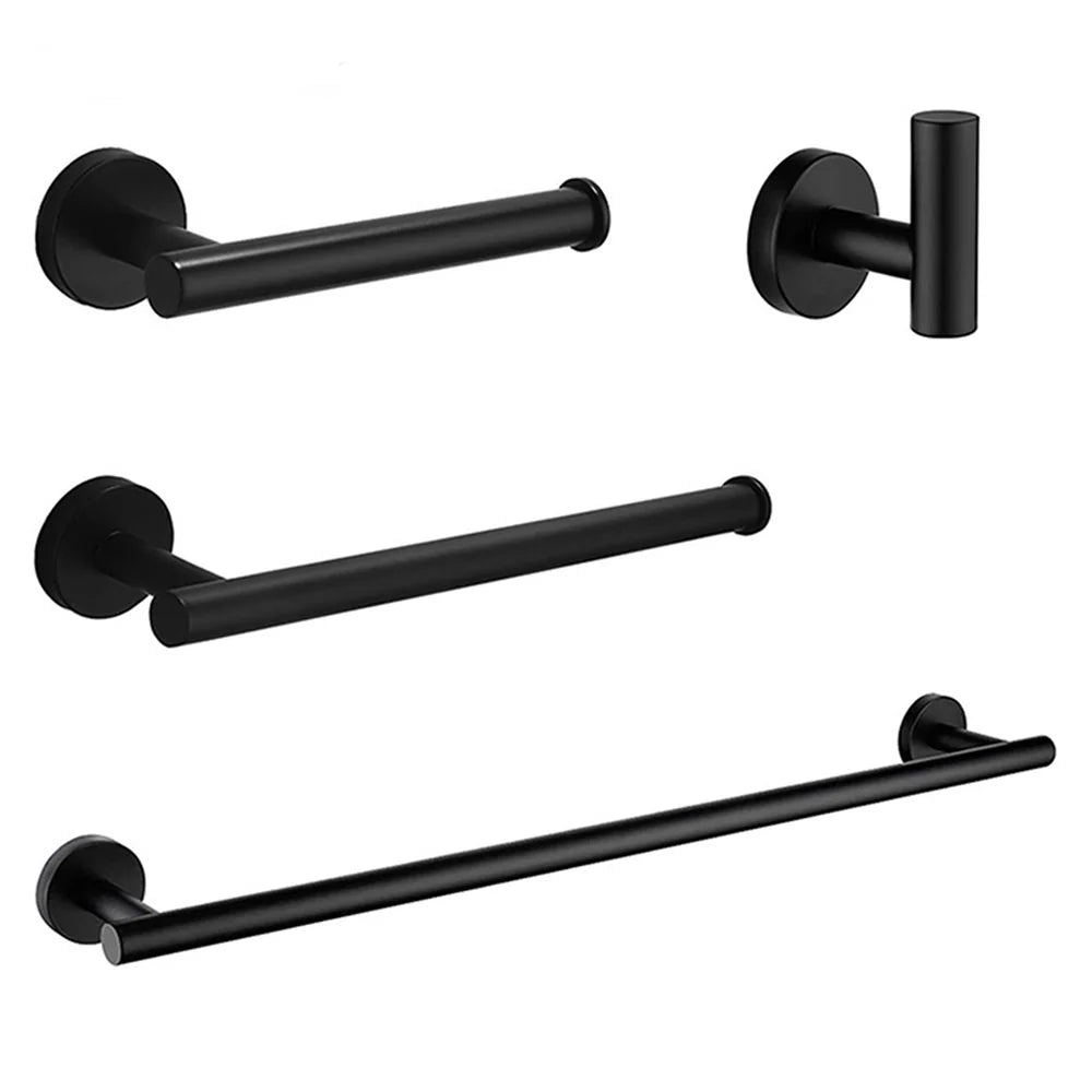 - 4 pieces: Bath towel holder (25’’), hand towel holder, toilet paper holder and hook