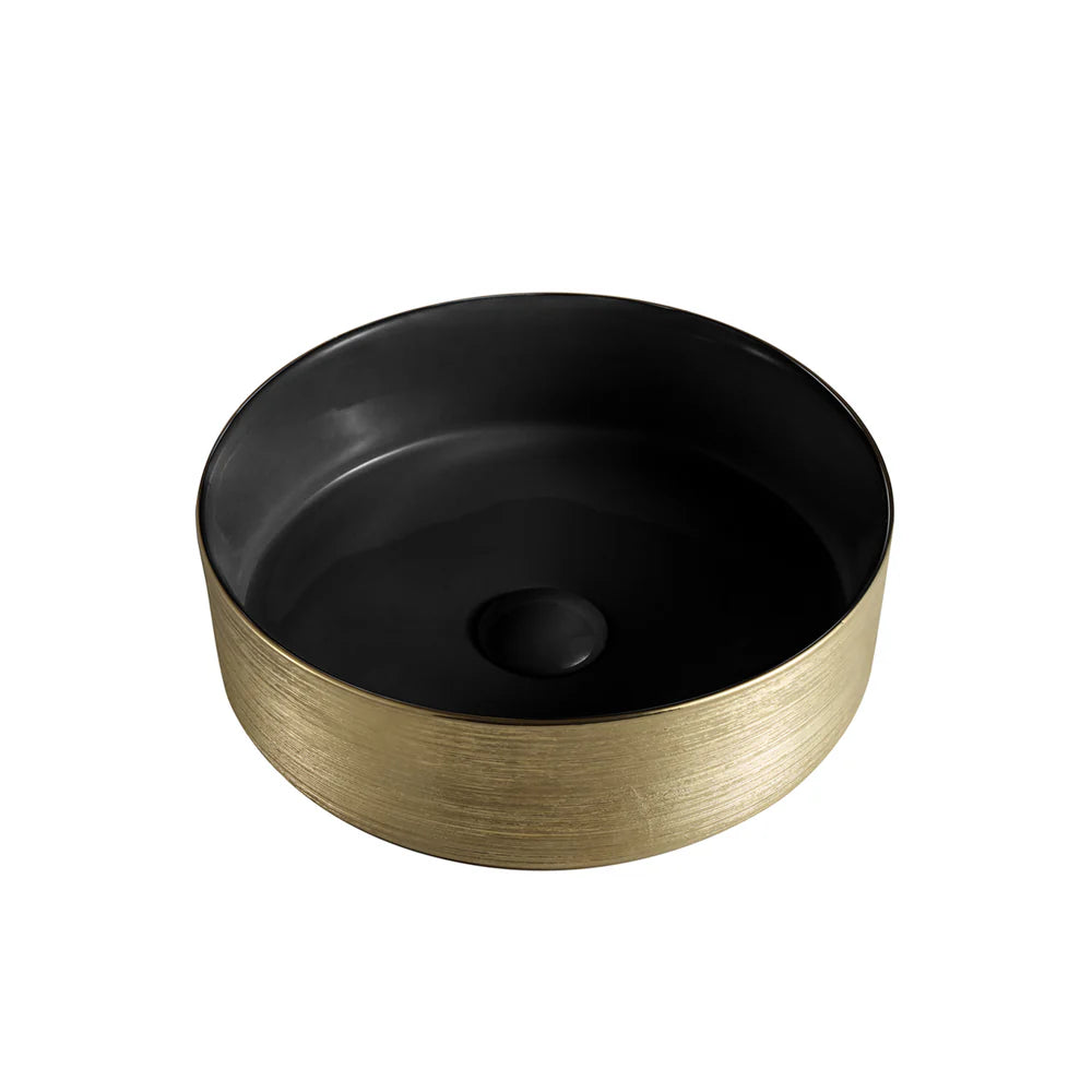 14’’X14’’ Round Gold and Black Porcelain Vessel Sink