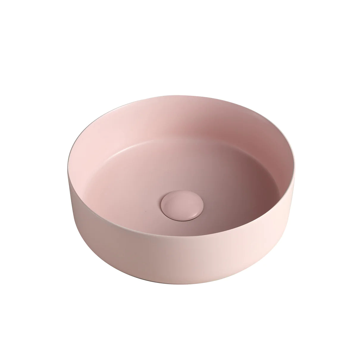 14’’X14’’ Round Matte Pink Porcelain Vessel Sink
