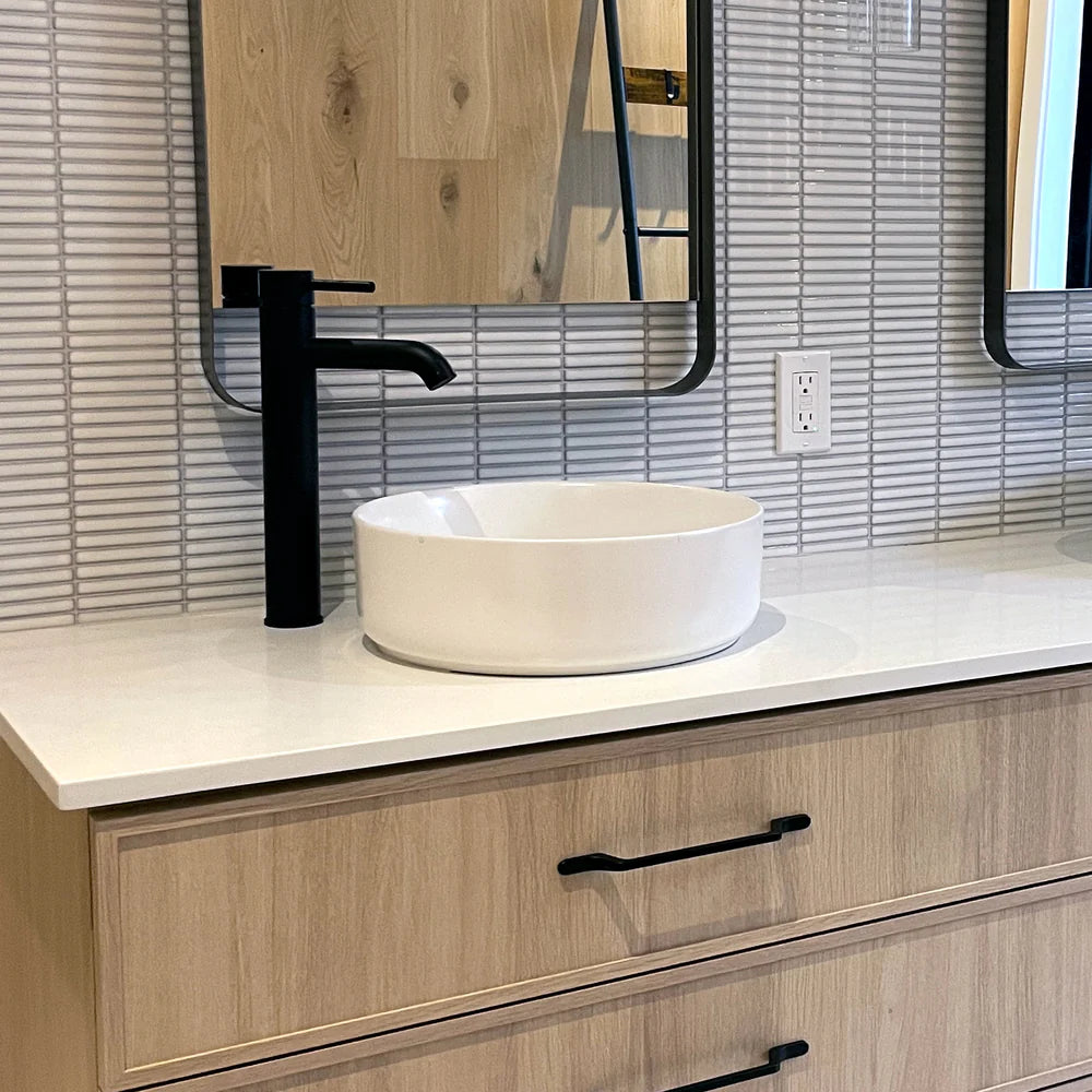Made of grade porcelain, the above Matte White basin is easy to clean and maintain, and its central hole ensures maximum water drainage. It fits perfectly in any bathroom and gives it a modern look. Our bathroom sinks are the perfect answer to your needs and allow you to bring your best bathroom design ideas to life.