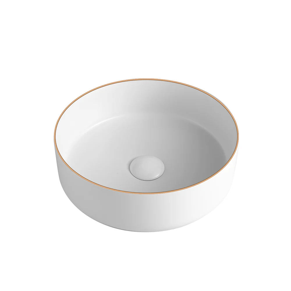 14’’X14’’ Round Matte White and Brushed Brass (gold) Porcelain Vessel Sink