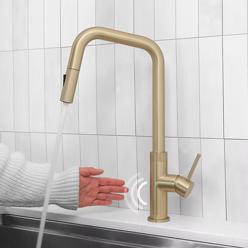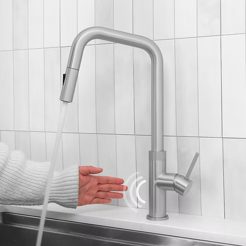 The K-150 Gela touchless sensor faucet redefines kitchen convenience. A simple wave of your hand activates and deactivates the water flow, while a side sensor prevents accidental activations.