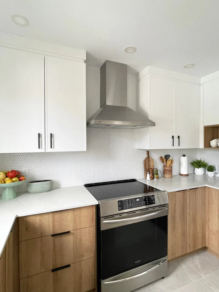 Looking for an efficient, simple and luxurious kitchen range hood? We have what you need. The hood HAMLET has all these assets and more. Its pyramid shape made of stainless steel provides a large suction area while adding a contrast in your kitchen. If you have black cabinets, this hood will merge among them and adding some relief. Its LED lights will provide you adequate lighting for a long time without using a lot of energy. You will quickly know how to use it with its easy-to-use LED control panel.