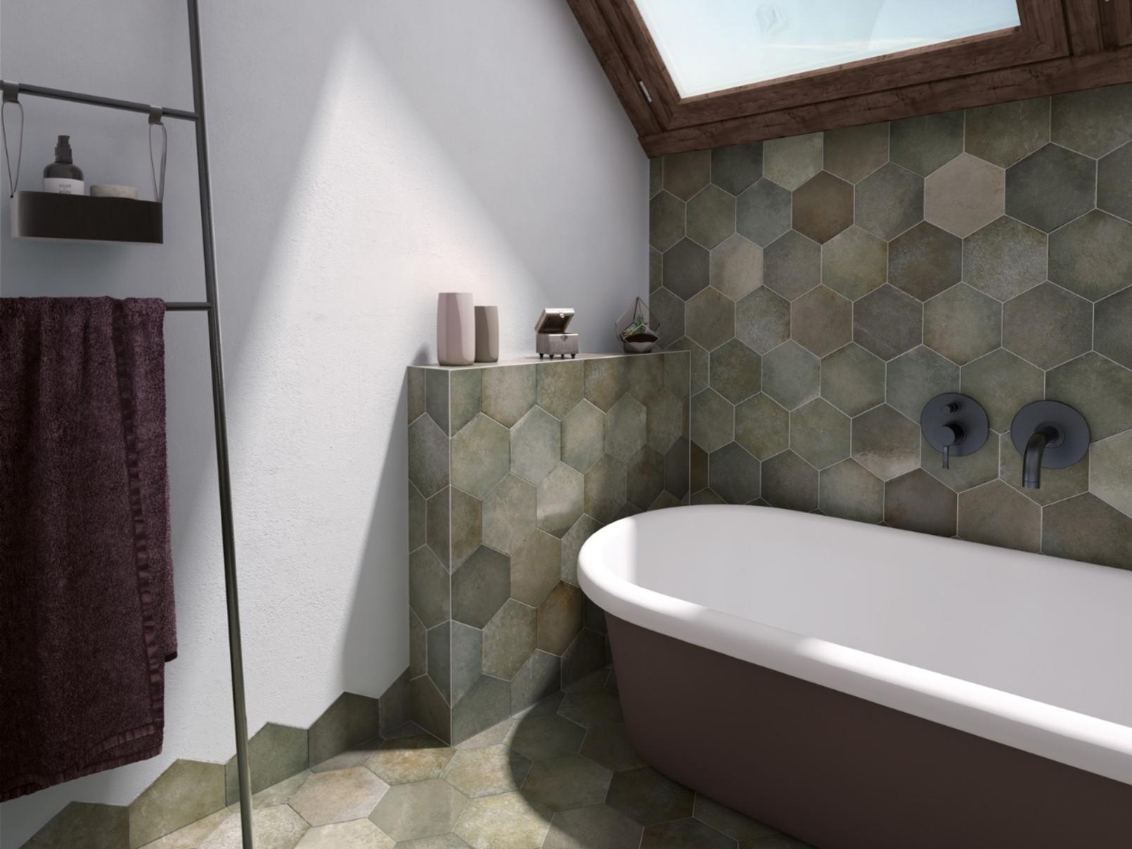 Hexagons are still in fashion. Heritage porcelain tiles with their matte finish prove it with an interesting palette of Mediterranean colours that will meet the needs of the most demanding designers. They can be used on the floor or on the wall in any room of your house or in commercial spaces where traffic is moderate.