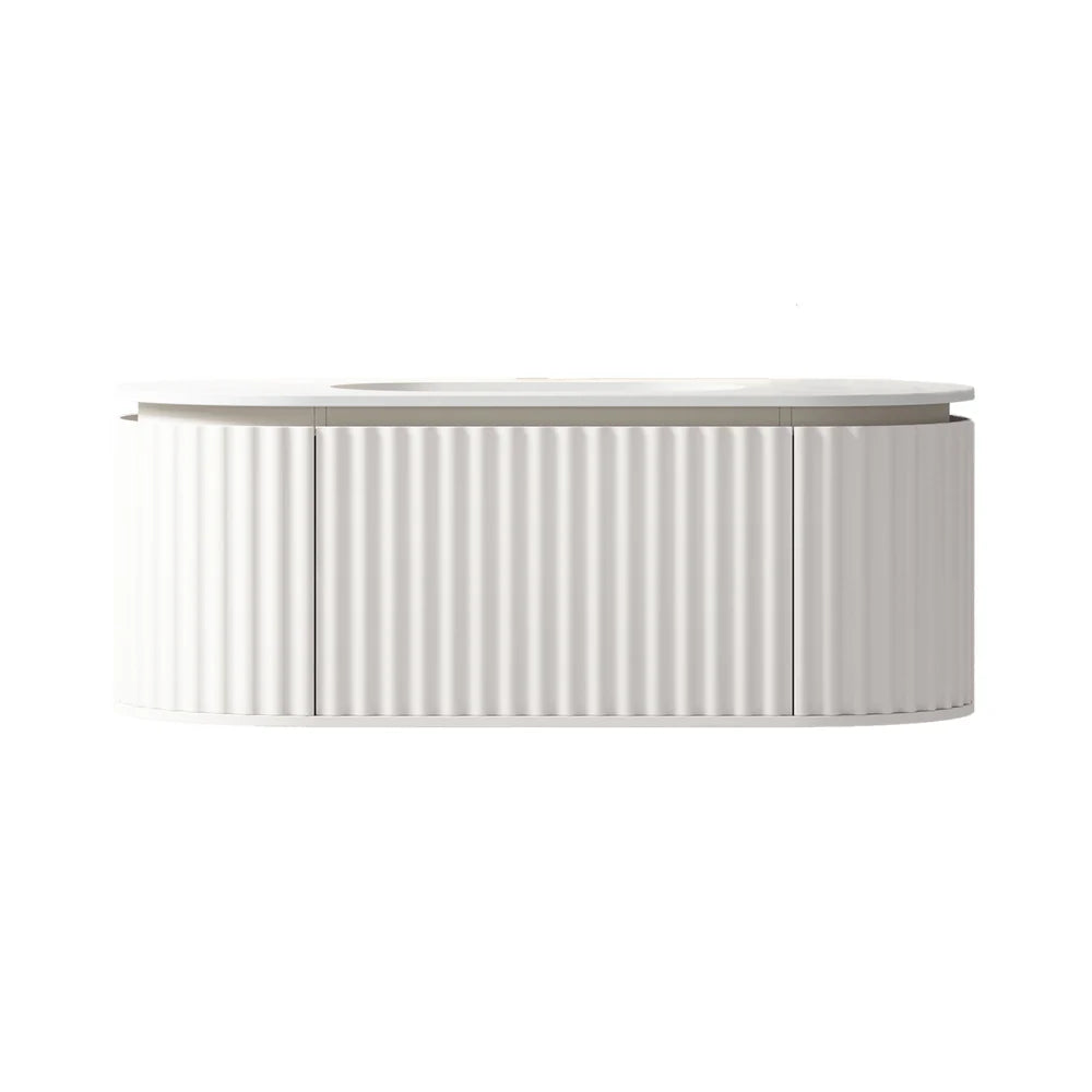 An original and stunning vanity unit, featuring a single drawer and storage on each side, all adorned with a wood veneer front. Enhanced with soft-close drawer slides, it blends functionality with exquisite design seamlessly.