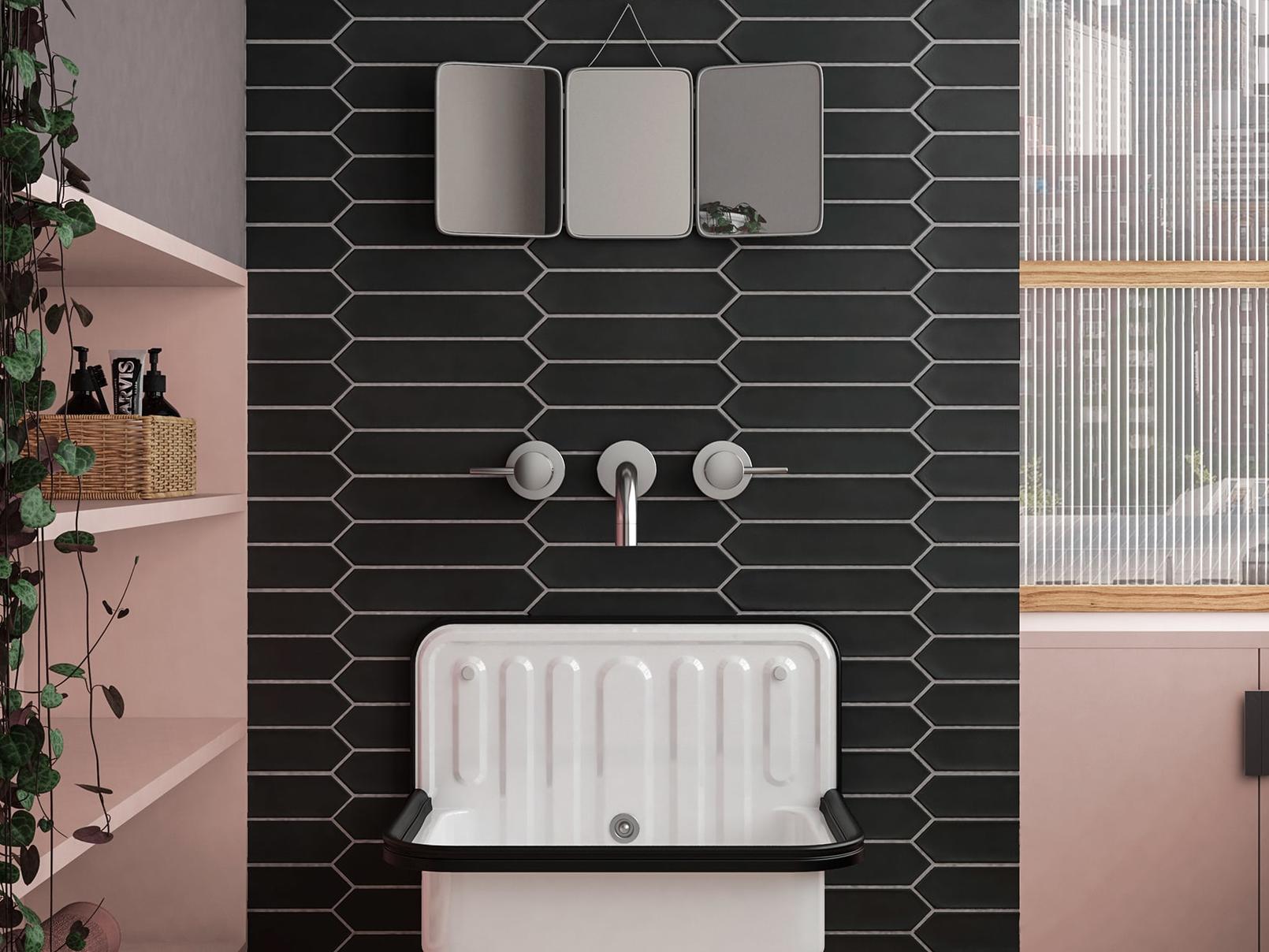 The Lanse ceramic wall collection is distinguished by its originality. Whether installed vertically or horizontally, its elongated hexagonal shape will give a contemporary and dynamic effect, contrasting with its muted, velvety and subtle colors in a more vintage look. These tiles will ensure a unique design for both residential and commercial spaces.