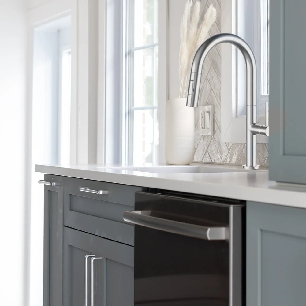Opt for a luxurious look in the kitchen with MOOCHI faucet. Its simple rounded design makes it a timeless item that matches both traditional and contemporary kitchens. The pull-out spray offers 2 jet options for extra versatility in the kitchen. The stainless steel construction, as well as the ceramic cartridge, ensure its quality and durability. A trendy choice for your kitchen!