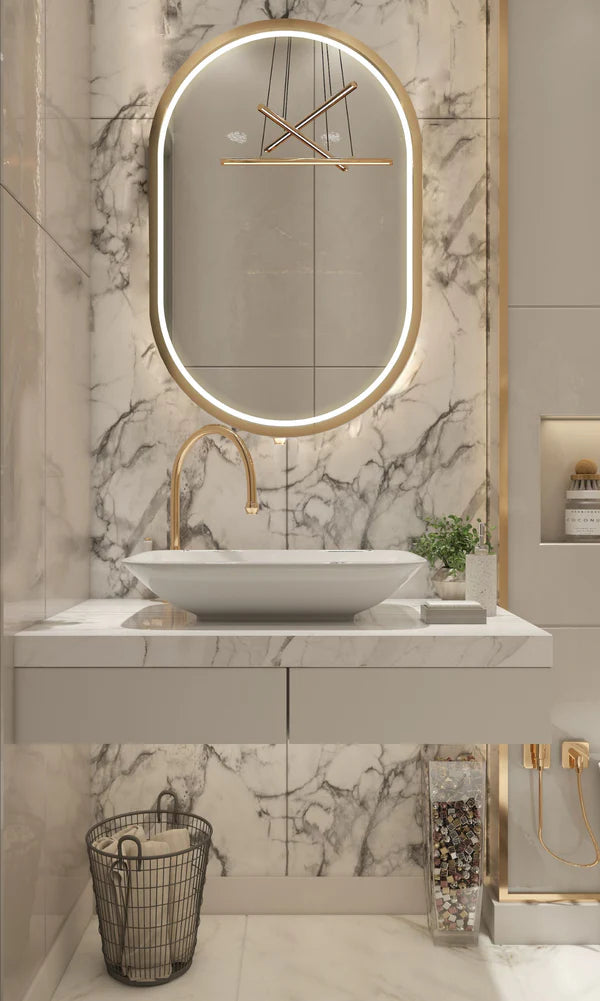 24’’X36’’ Framed Oval Mirror with LED Lights