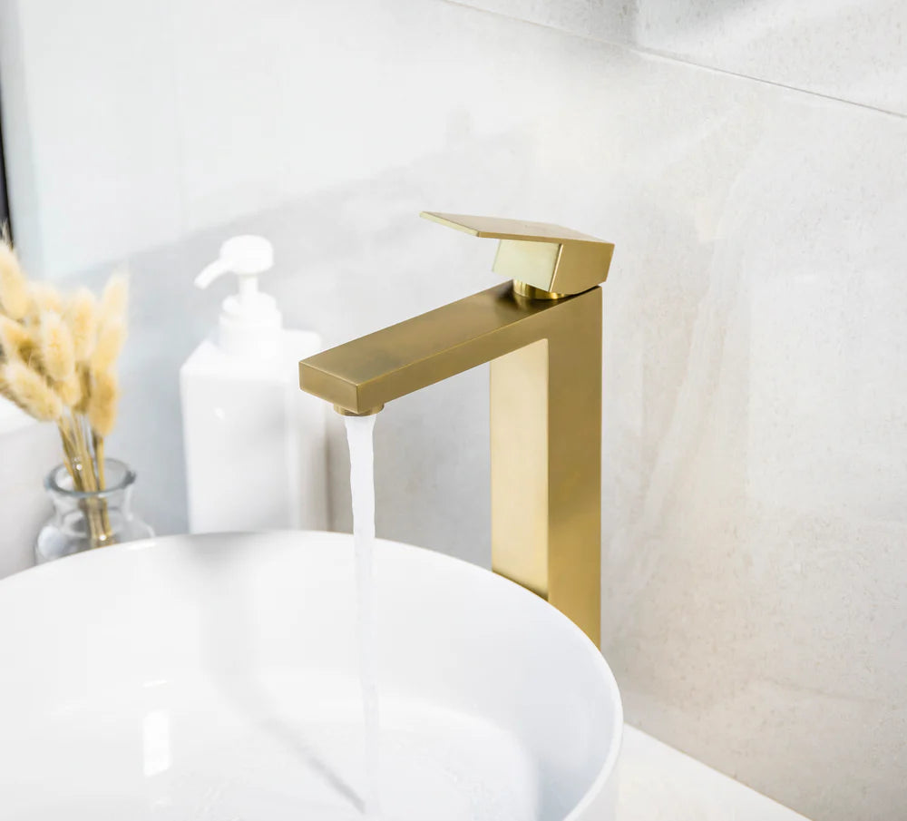 Add a beautiful accent to your bathroom with this square lavatory faucet. The single handle facilitates temperature and flow control as well as creating a unique and cleaner look. Thanks to the sold brass body and the ceramic cartridge, the durability of the product is ensured.