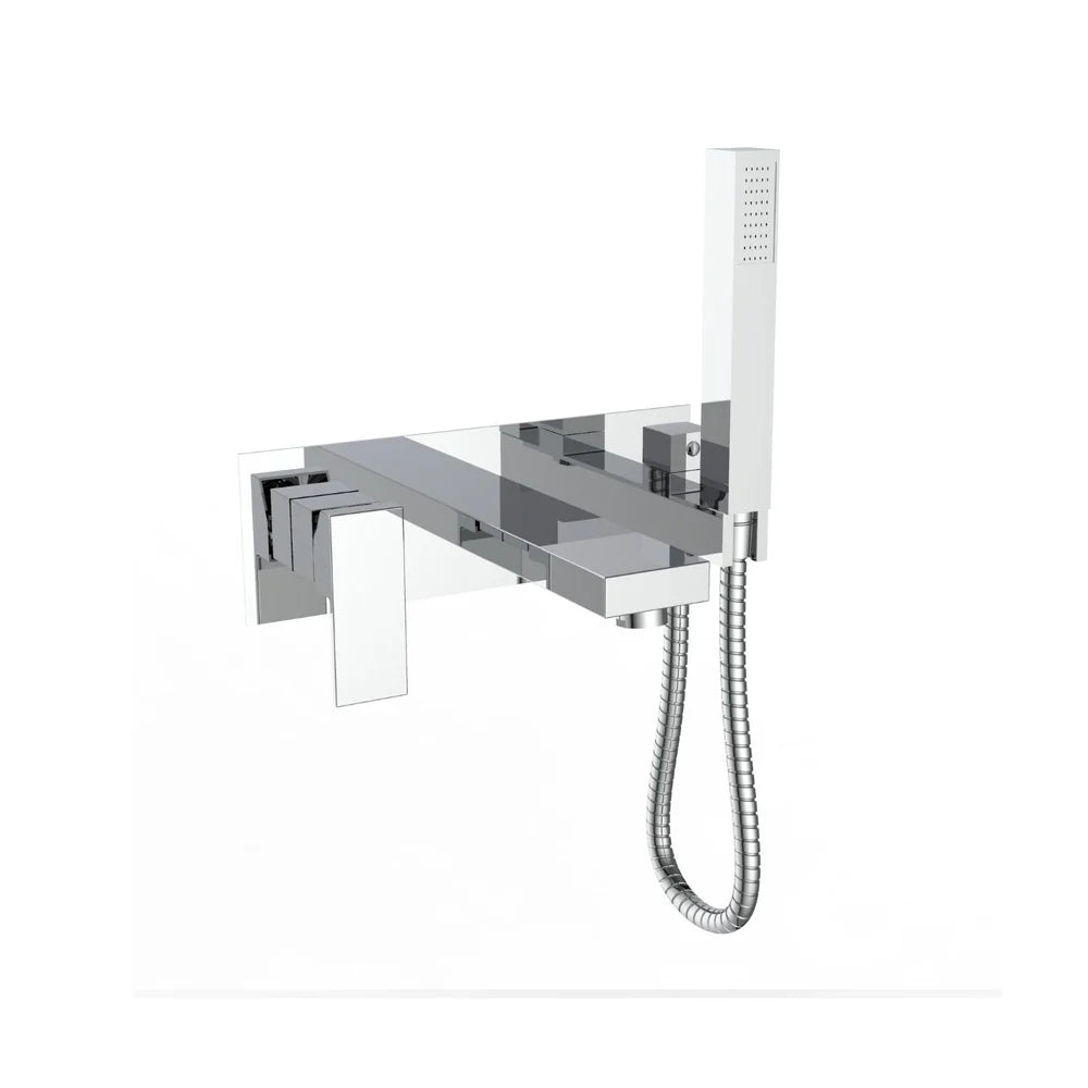 Square shape and elegant, this wall mounted bathub faucet is ideal for modern or classic style bahtrooms. Its unique handle facilitates temperature control and its hand shower will be a real ally for rinsing. This faucet will certainly be an excellent addition to your bathroom!