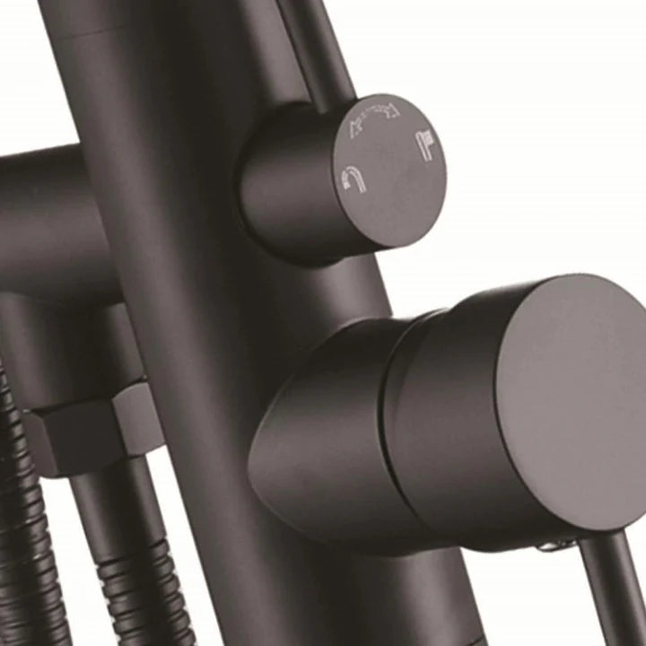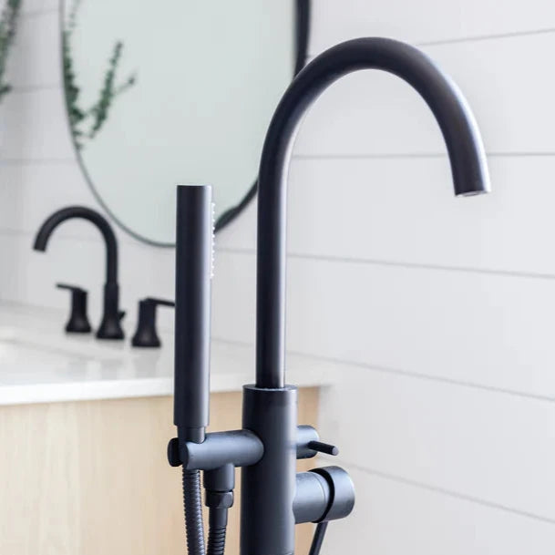 Enhance the style of your bathroom with this stylish freestanding tub faucet! Its unique handle facilitates temperature control and its hand shower will be a real ally for rinsing. Its solid brass construction and ceramic cartridge ensure great durability.
