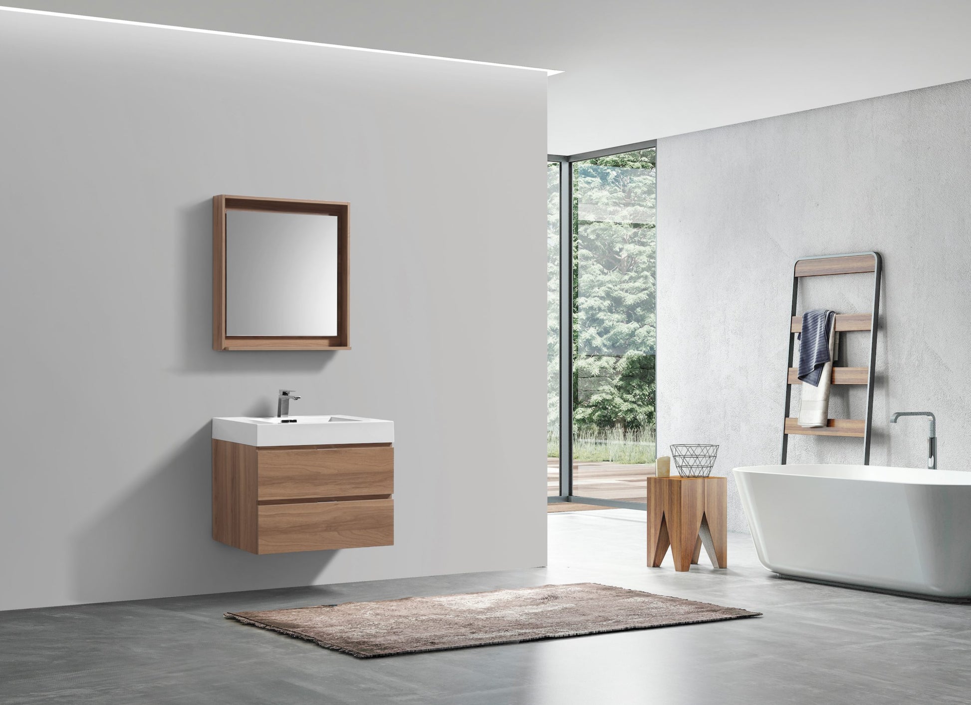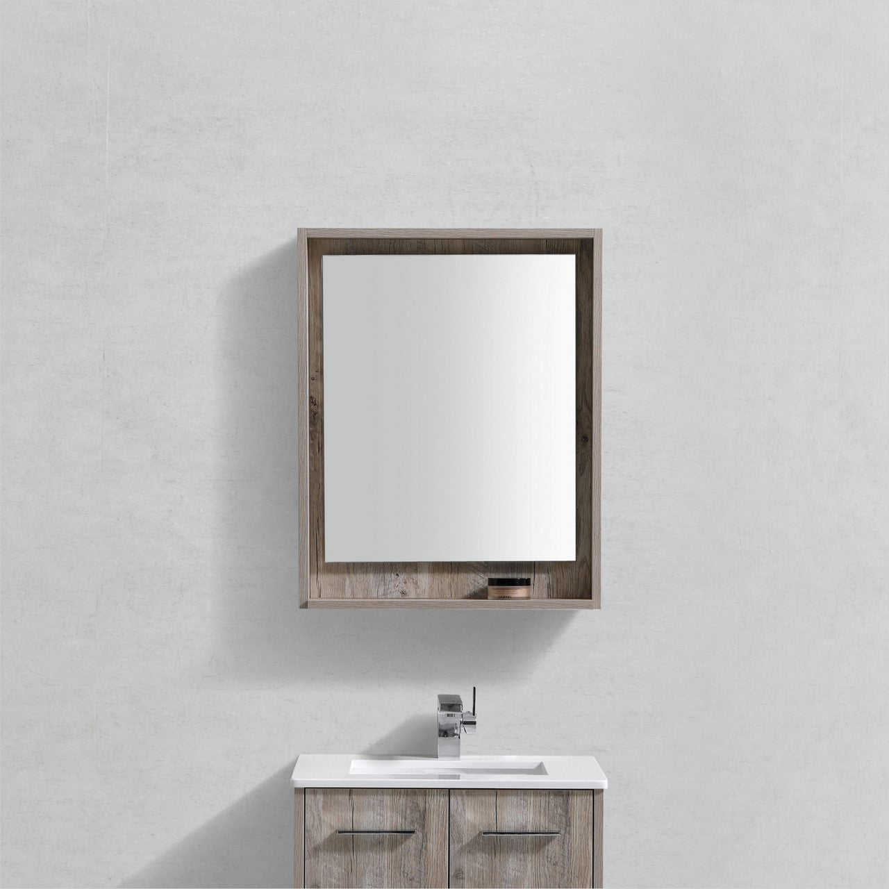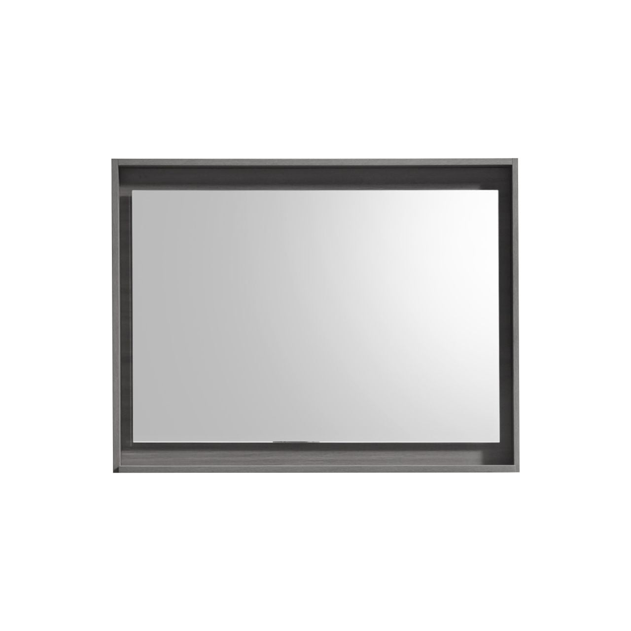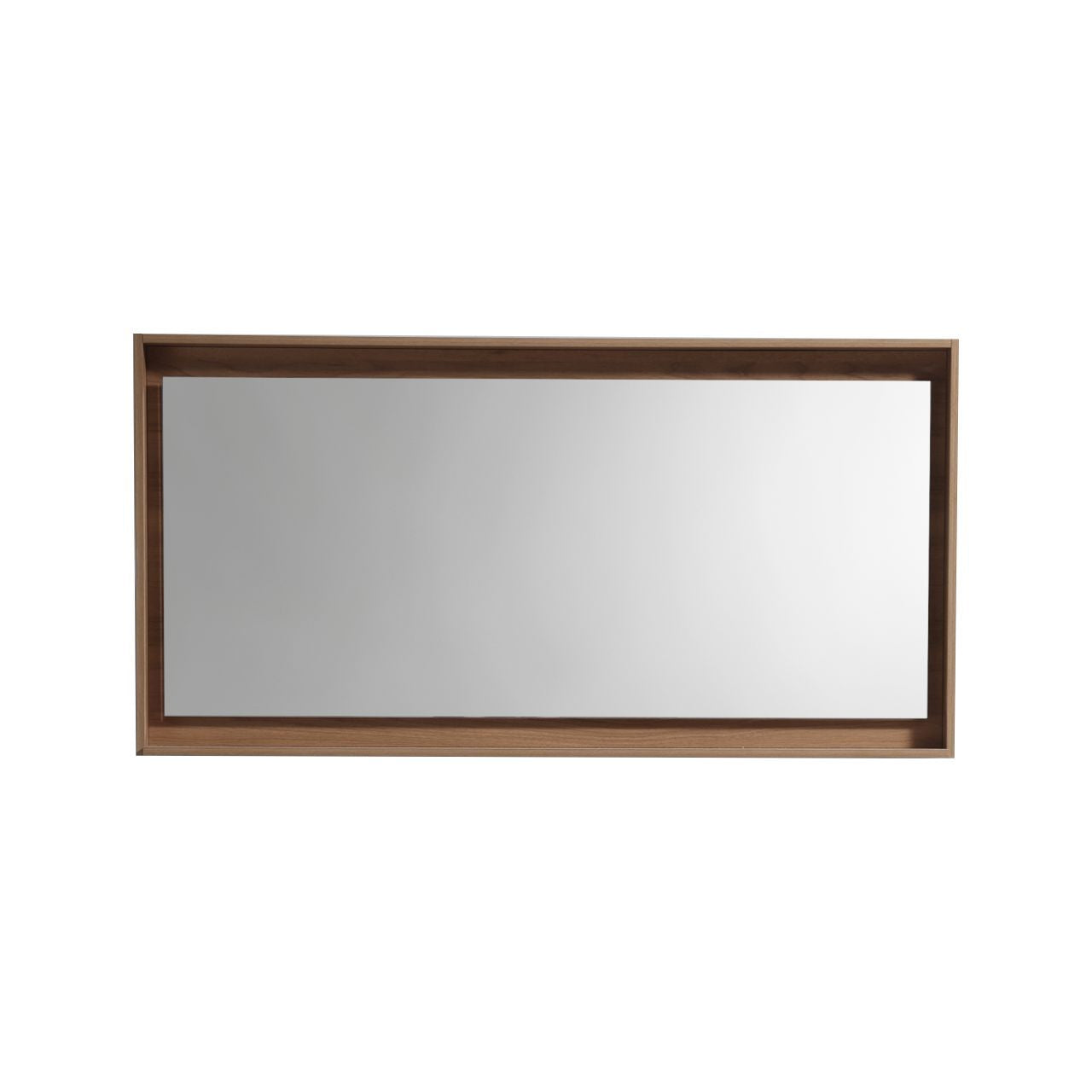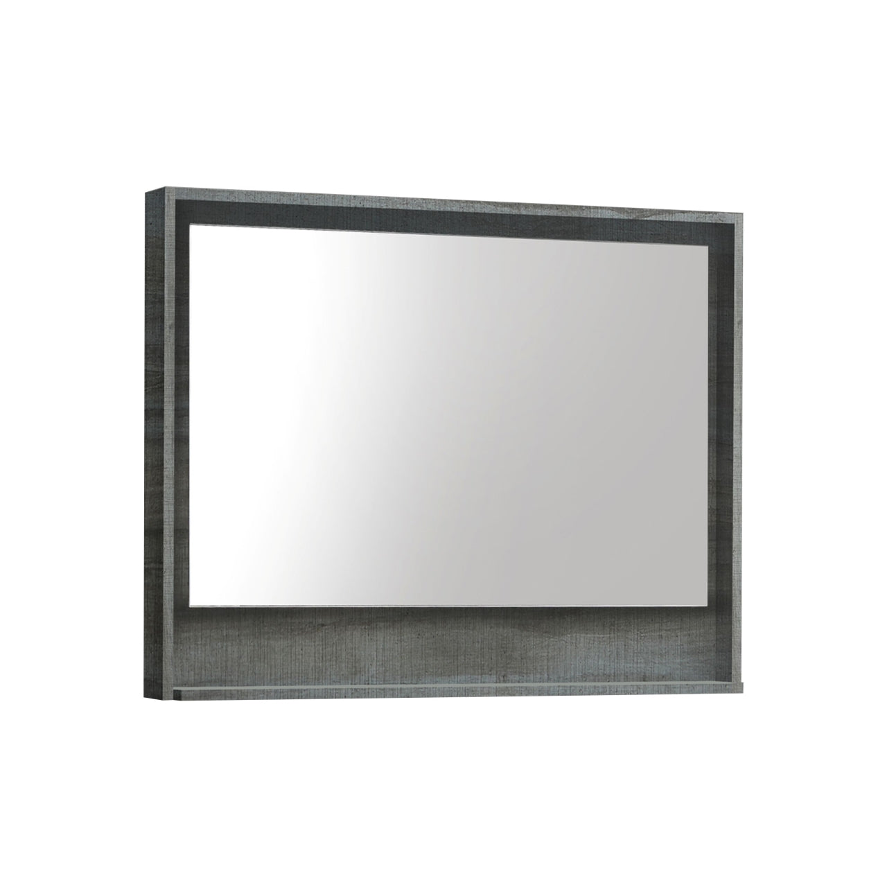 This Mirror features a wood trim all around and a bottom shelf. It is a perfect match for our Vanities.