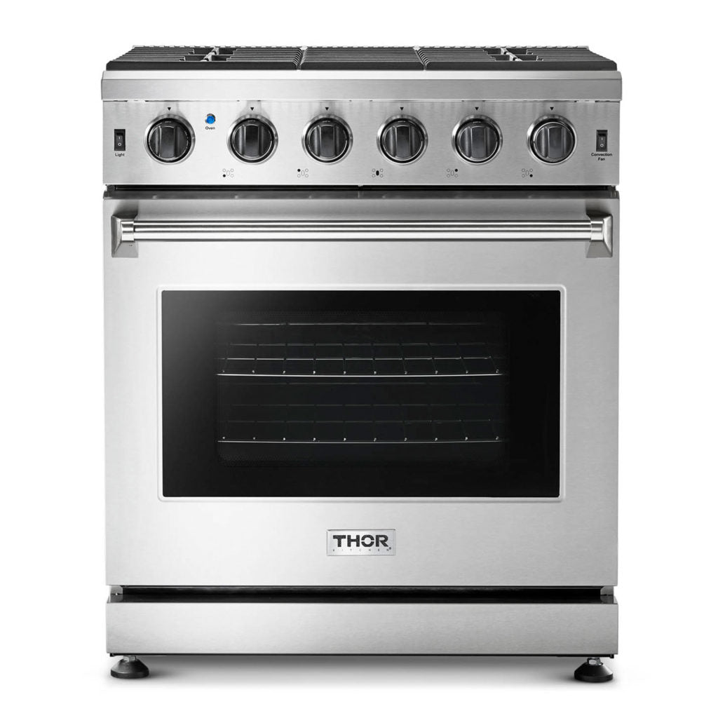 THOR Kitchen offers the power and performance of a premium professional appliance at a practical price. The THOR Kitchen 30 Inch Gas Range is a stainless steel machine designed with professional features and functionality. With powerful burners, continuous grates and a commercial convection fan, this range takes everything from prime rib to snickerdoodles to the next level. #cooklikeagod