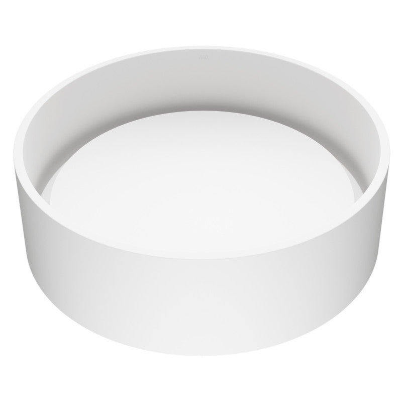 VIGO Matte Stone Anvil Composite Round Vessel Bathroom Sink in White