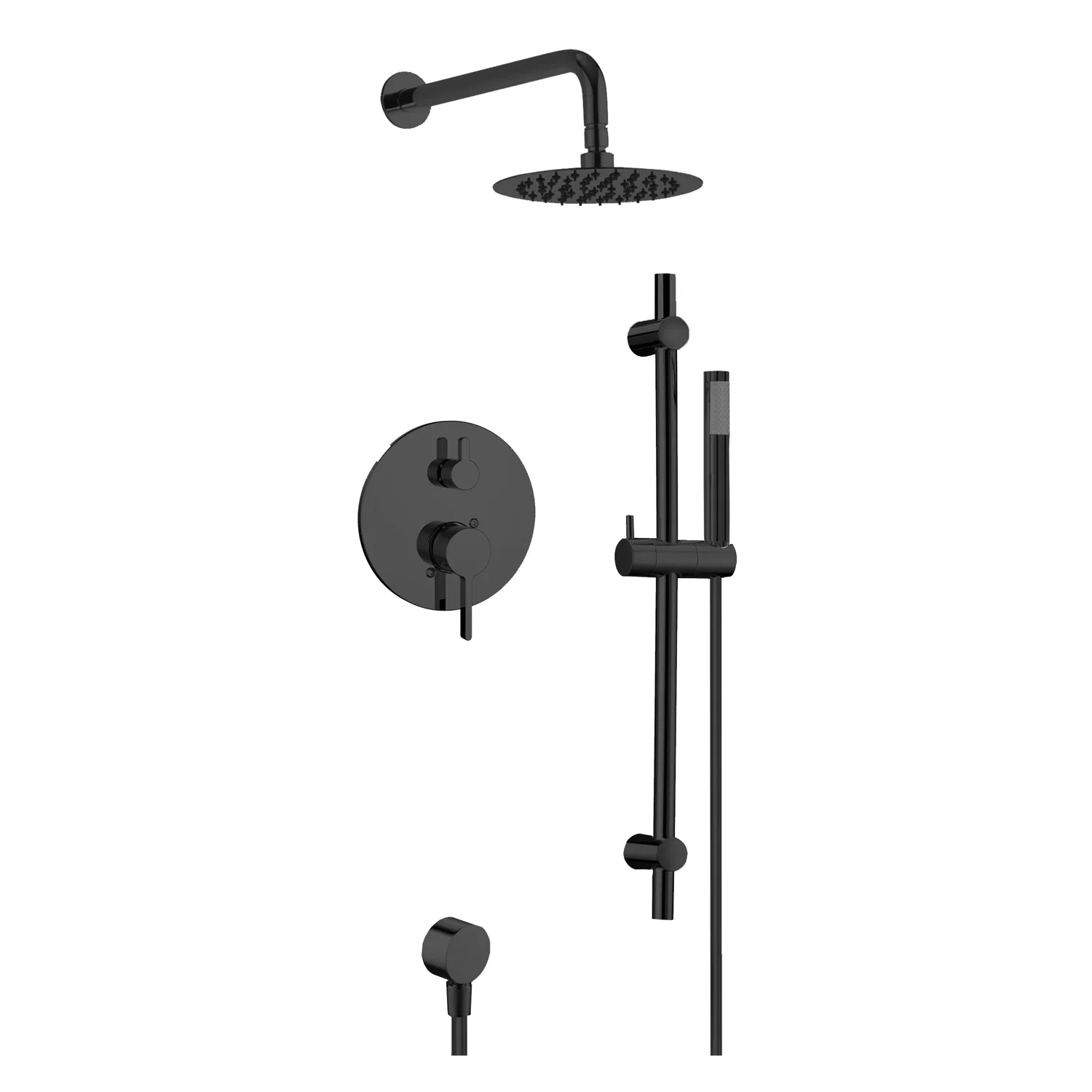 Complete your bathroom by adding this 2-function bath shower faucet. This set includes the rain head shower, the hand shower and rail, the valve and the diverter. The ceramic cartridge and the solid brass body ensure the longevity. VISSALI is the perfect design for a modern-style bathroom.